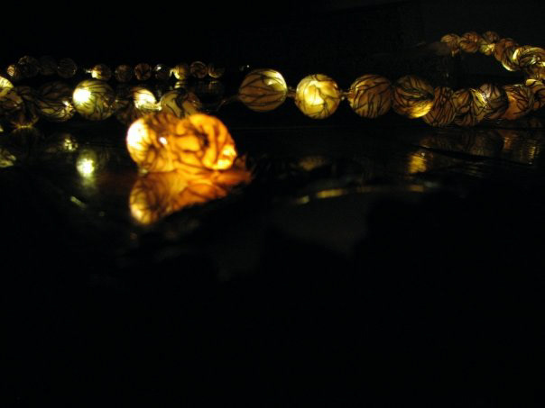 Electronics, Embroidery Thread, Bathbeads, Nail polish, Conductive thread, Glass, Brass